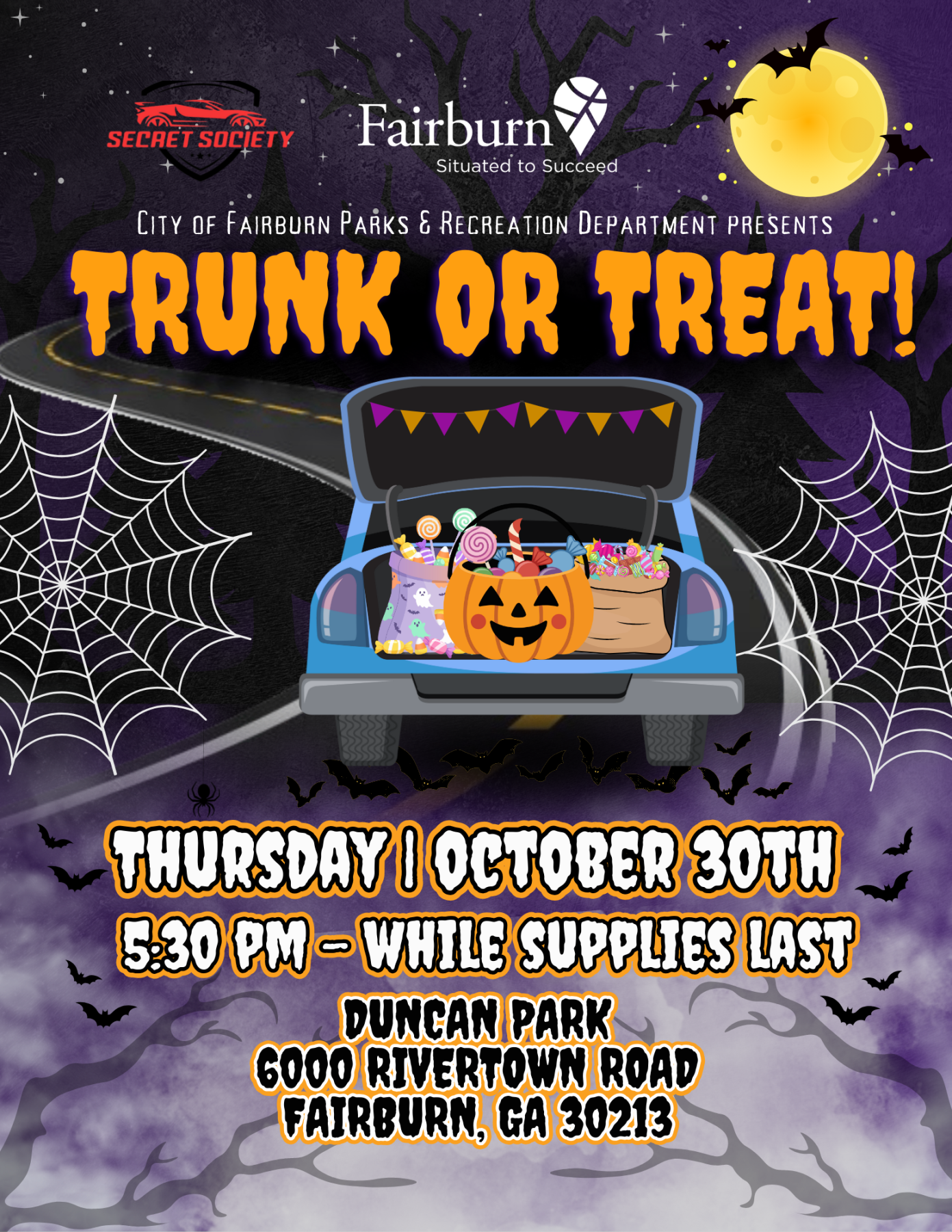 Grab your costumes, your buckets and come on down to City of Fairburn's Parks and Recreation Trunk or Treat!