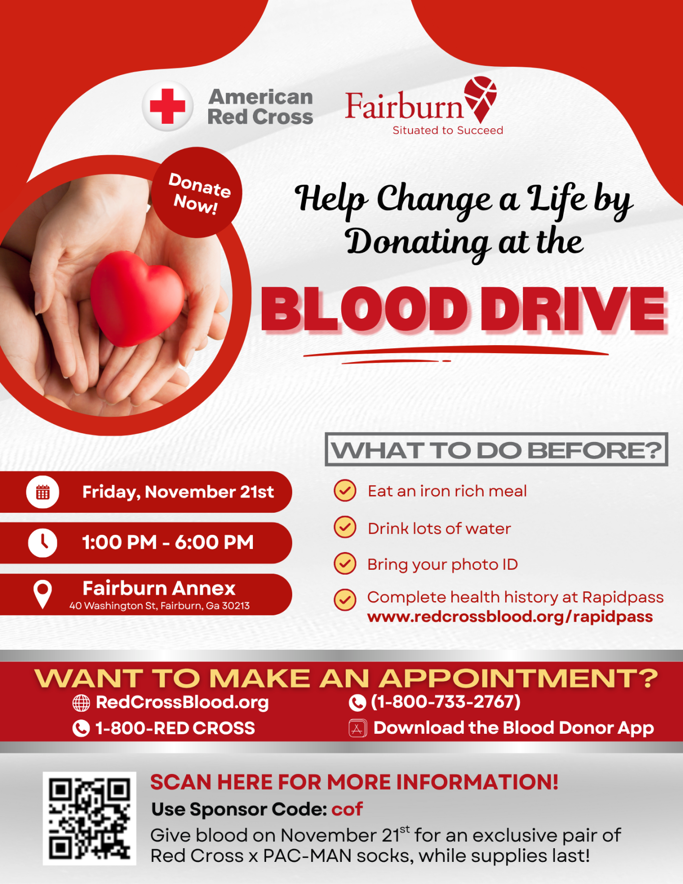 Join City of Fairburn and the American Red Cross as we take a step towards changing lives at the upcoming blood drive!