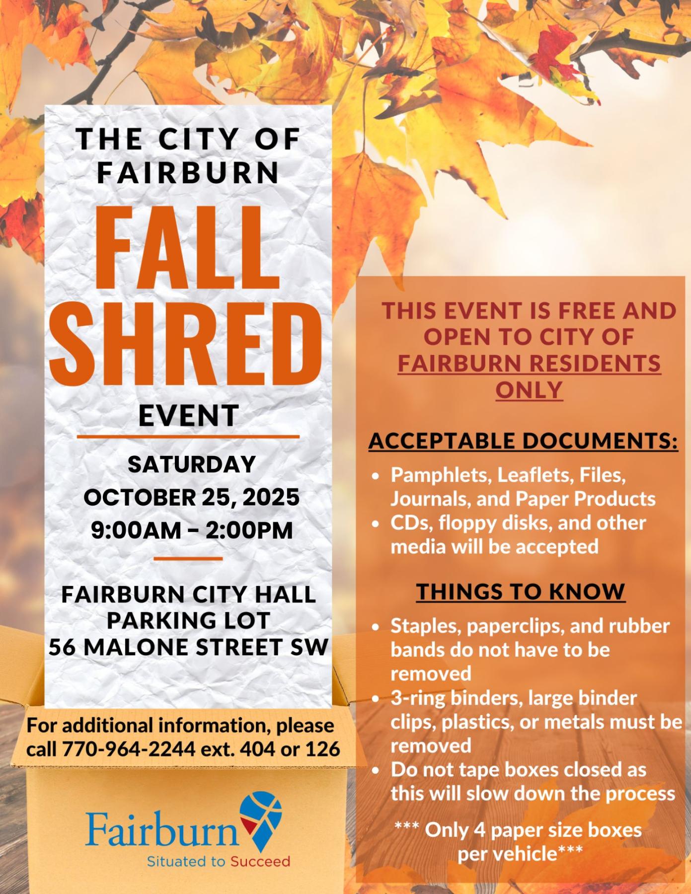 TIME TO DECLUTTER WITH THE FAIRBURN FALL SHRED AND CLEAN UP EVENTS!