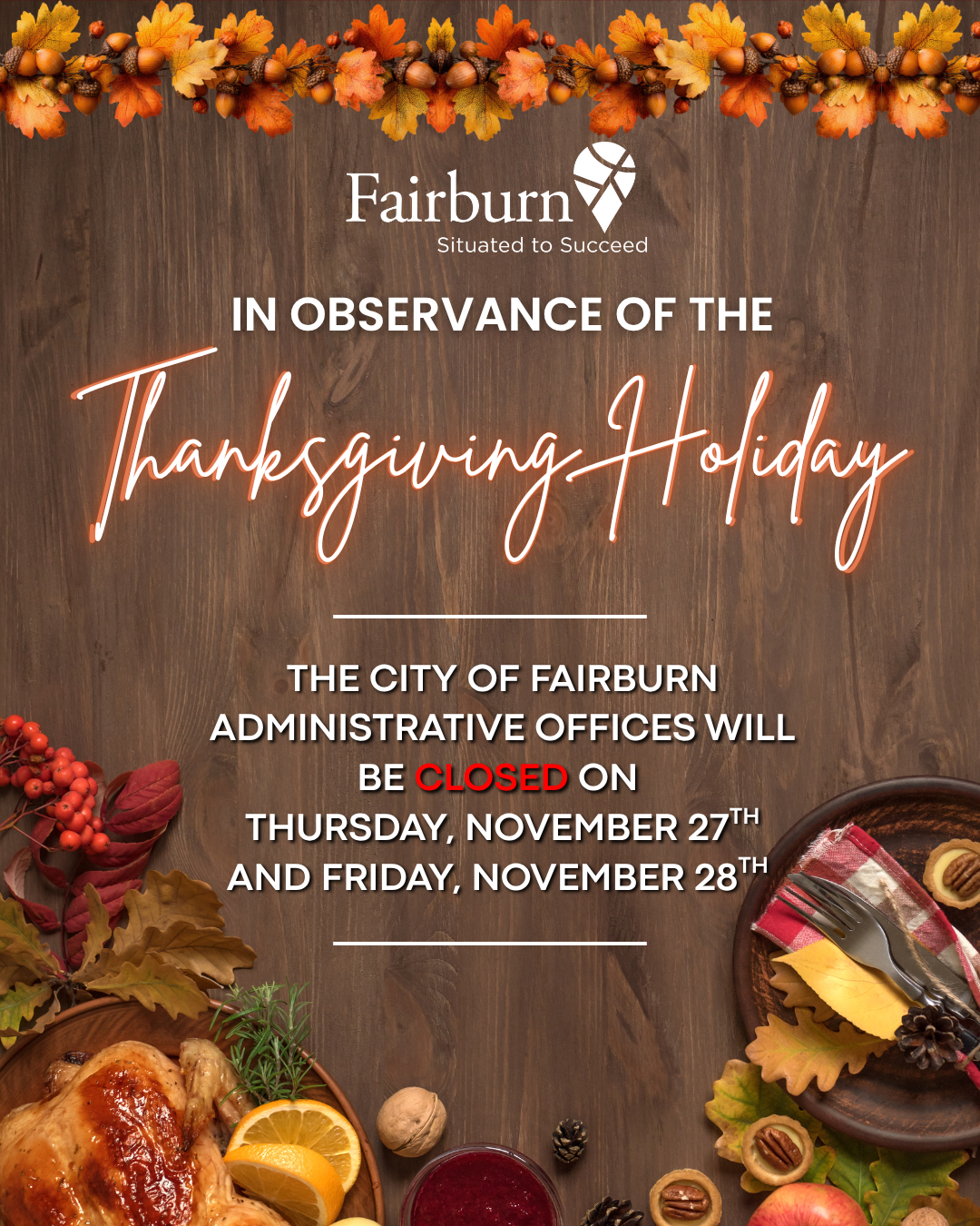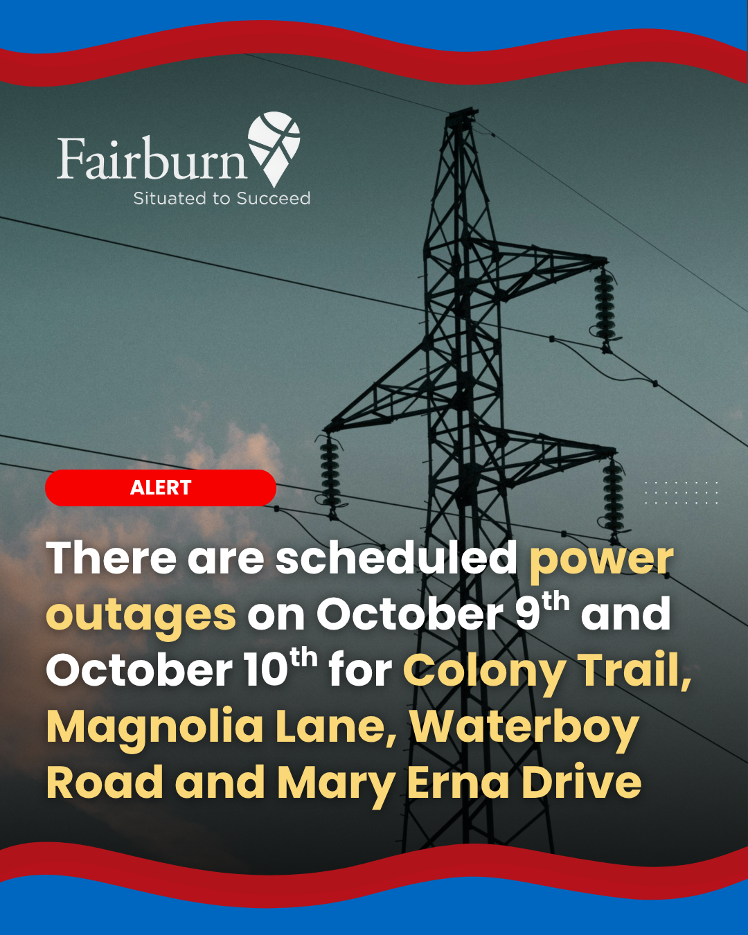 Drive carefully, follow posted signs, and stay alert for construction crews! Thank you for your patience as we work to improve traffic flow and safety in Fairburn!